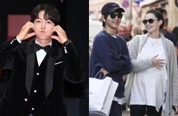 Hậu kết hôn với bà xã người Anh, Song Joong Ki nhiều lần lên hot search vì hình ảnh gương mặt trẻ thơ. Có lần, anh còn được nhận xét là trông trẻ hơn đàn em kém 1 tuổi Kim Seon Ho trong cùng khung hình chụp vội ngoài đời