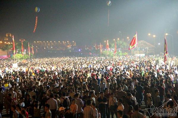 Đến khoảng 22h đêm, khu vực quảng trường đền Hùng vẫn còn rất đông du khách đến vui chơi và tham quan. Hàng vạn người dân từ khắp nơi vẫn ùn ùn đổ về.