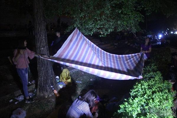 Lo ngại cảnh phải chen lấn, xô đẩy tại lễ hội Đền Hùng, tối 24/4, hàng trăm người dân đã trải bạt, nằm ngủ tại mọi chỗ có thể dưới chân núi Nghĩa Lĩnh để chờ đến giờ diễn ra lễ giỗ tổ Hùng Vương. Người dân nằm ngủ ngon lành bên các gốc cây, bãi cỏ hoặc thuê chiếu để ngả lưng, thậm chí thức trắng đêm.