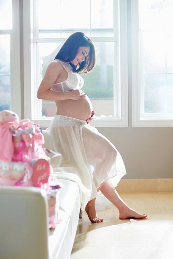 Thanh Thảo được chồng lên thực đơn ăn uống khoa học nên chỉ tăng 8kg, ngoài chiếc bụng ngày càng lớn "vượt mặt", cơ thể cô không có nhiều thay đổi.