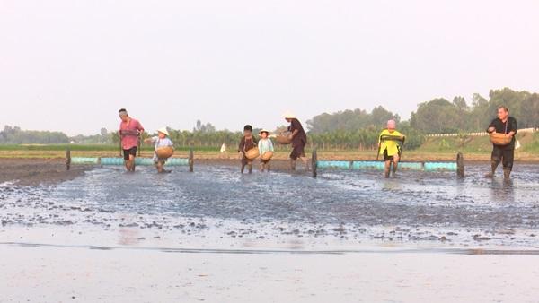 hào hứng khi được bắt cá rô đồng, không còn bé nào còn