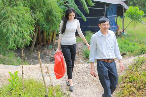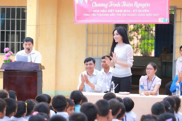 Hoa hậu Việt Nam 2014 cùng với những người bạn của cô đã vượt gần 200 cây số, có mặt tại một ngôi trường nhỏ của các em học sinh vùng biên giới thuộc huyện Tân Châu - Tây Ninh.