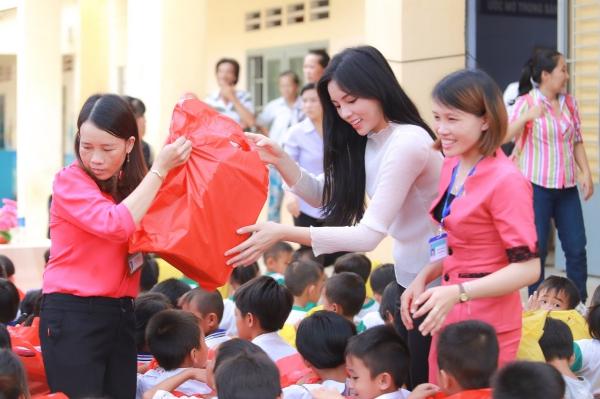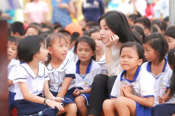 Kỳ Duyên cùng mọi người đã tận tay trao gần 300 phần quà cho các em học sinh nghèo tại đây gồm tập sách, bút, balo, áo thun, máy tính học sinh,…