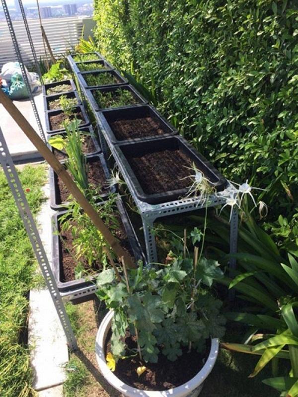 Vườn rau và hoa mười giờ xanh mướt trên sân thượng căn penthouse triệu đô của "Nữ hoàng nội y".