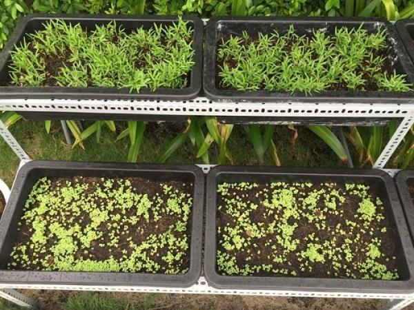 Những mầm rau xanh mới được gieo trồng.