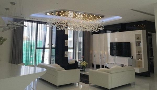 Trong không gian sống rộng rãi của mình, người đẹp chọn lựa những món nội thất “sang chảnh”, đặc biệt là hệ thống đèn và ốp gương cực kỳ xa hoa, lộng lẫy: đèn chùm, đèn thả, đèn ốp tường,… phản chiếu trong những tấm gương trong suốt càng tăng thêm độ lung linh rực rỡ cho căn hộ.