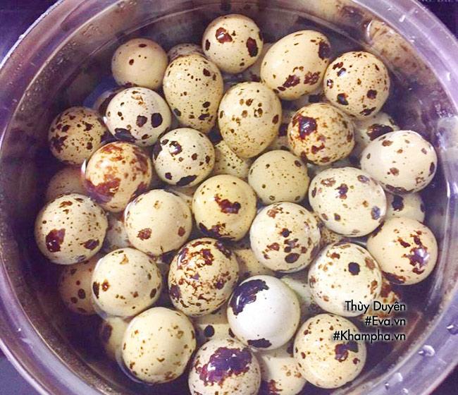 - Trứng cút rửa sạch vỏ cho vào nồi thêm nước sâm sấp mặt trứng luộc chín trứng khoảng 10 phút là được. Trứng vớt ra ăn nóng chấm kèm nước chấm ốc thêm chút rau răm sẽ rất ngon.