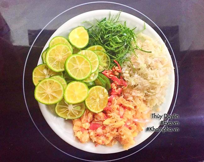 Nguyên liệu: Nước mắm ngon: 2 muỗng; Nước sôi để nguội : 1 muỗng; Dấm gạo: 1 muỗng; Đường : 3 muỗng; Gừng, ớt, tỏi , bằm nhỏ; Sả: thái nhỏ.