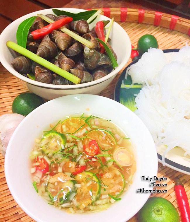 Dùng kim hay tăm nhọn khêu từng con ốc luộc chấm chút nước, thêm miếng bún nhỏ chấm ăn kèm, hít hà vị thơm cay nồng của nước mắm chanh gừng hoà quện với vị giòn giòn sần sật của từng con ốc thật chẳng còn gì tuyệt vời hơn.