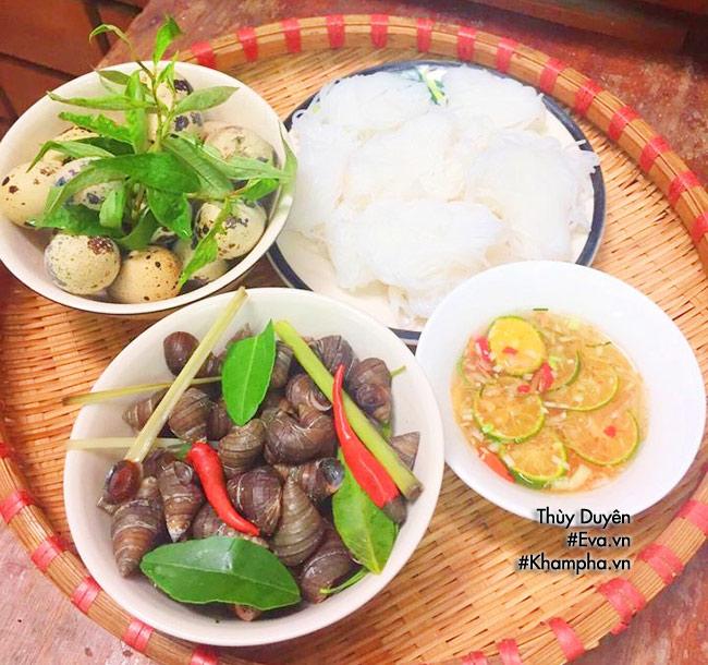 - Bún nắm cắt thành từng miếng nhỏ vừa ăn, bày ra đĩa, nước chấm đựng trong bát nhỏ, ốc luộc nóng múc ra bát.