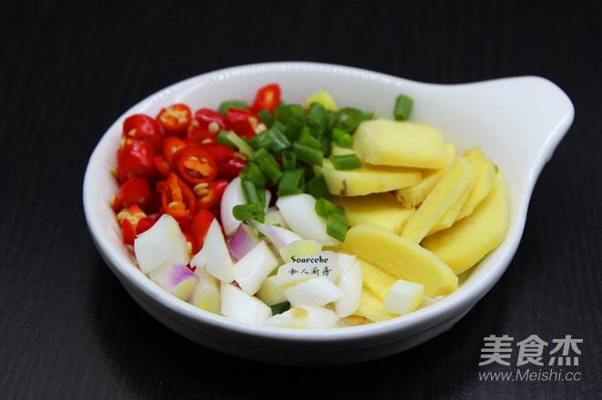 Bước 4: Chuẩn bị các gia vị: Gừng, ớt, hành hẹ xắt lát cho vào một cái bát