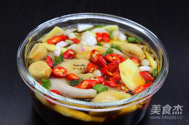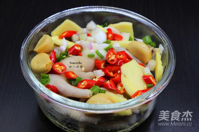 Bước 5: Cho tất cả các gia vị này cùng với chân gà vào một cáu âu thủy tinh