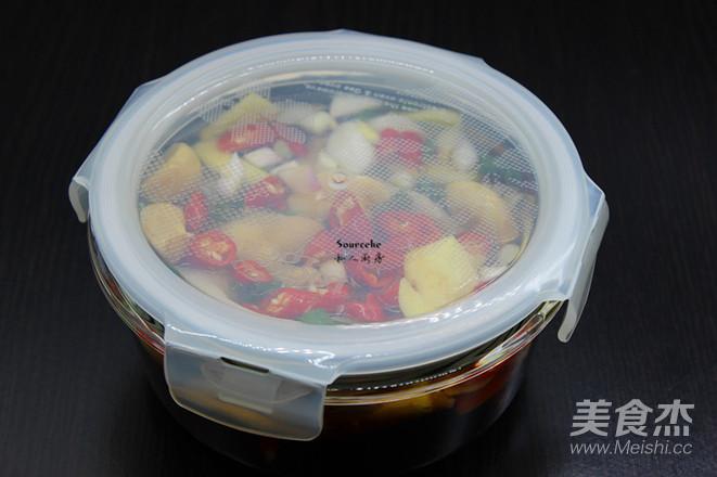 Bước 6: Cuối cùng, cho giấm, xì dầu vào ngâm cho xâm xấp. Đậy nắp lại và bỏ vào tủ lạnh ăn dần.