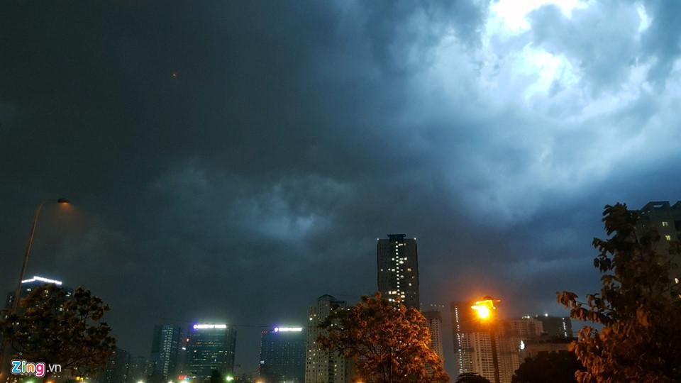 Mây đen bao phủ kín bầu trời trung tâm thủ đô lúc 18h15 chiều 18/5. Từ bất cứ khu vực quận nào của Hà Nội, người đi đường cũng có thể nhìn thấy.