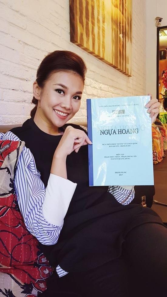 Thanh Hằng hào hứng khoe kịch bản phim.