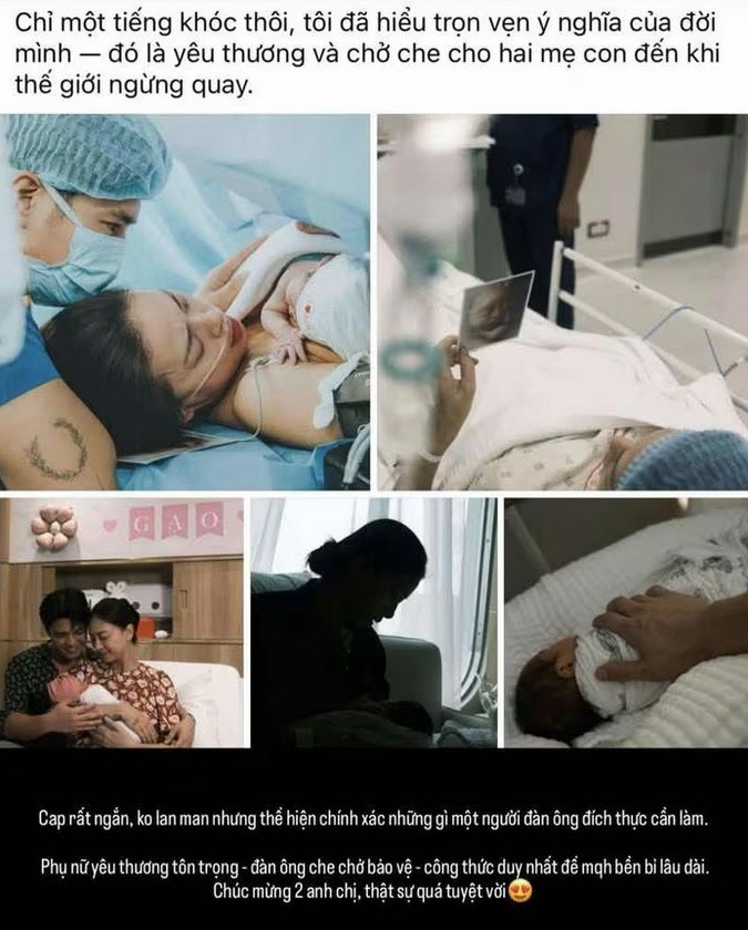 Đáng chú ý, mới đây, MC Mai Ngọc vừa chia sẻ lại hình ảnh Huy Trần cùng vợ "lâm bồn" thành công kèm dòng trạng thái đầy xúc động: "Cap rất ngắn không lan man nhưng thể hiện chính xác những gì một người đàn ông đích thực cần làm. Phụ nữ yêu thương tôn trọng – đàn ông che chở bảo vệ – công thức duy nhất để mối quan hệ bền bỉ lâu dài. Chúc mừng hai anh chị, thật sự quá tuyệt vời”.
