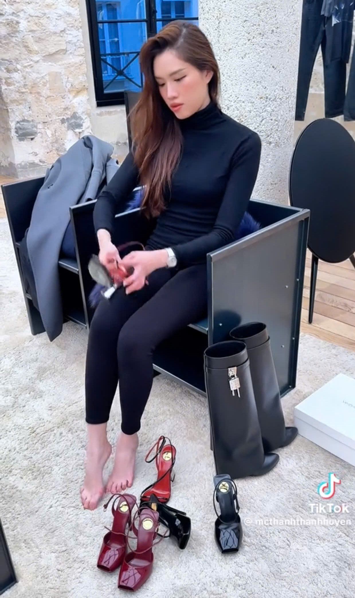 Nàng hậu nhanh chóng ghé các cửa hàng thời trang danh tiếng để mua lại những món đồ cần thiết. Không chọn phương án tiết kiệm, cô chi mạnh tay vào loạt thương hiệu cao cấp như Christian Louboutin, Givenchy... để bổ sung vào tủ đồ vừa bị mất.