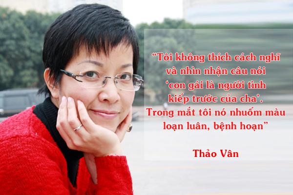 Lý giải cho cách suy nghĩ của mình, Thảo Vân viết: "Tình cảm giữa cha và con gái là thứ tình cảm thuần khiết, trong sáng và cao cả! Nó tuyệt đối không thể ví với một dạng tình cảm khác, kiểu tình cảm yêu đương đôi lứa! Tuyệt nhiên không thể!
