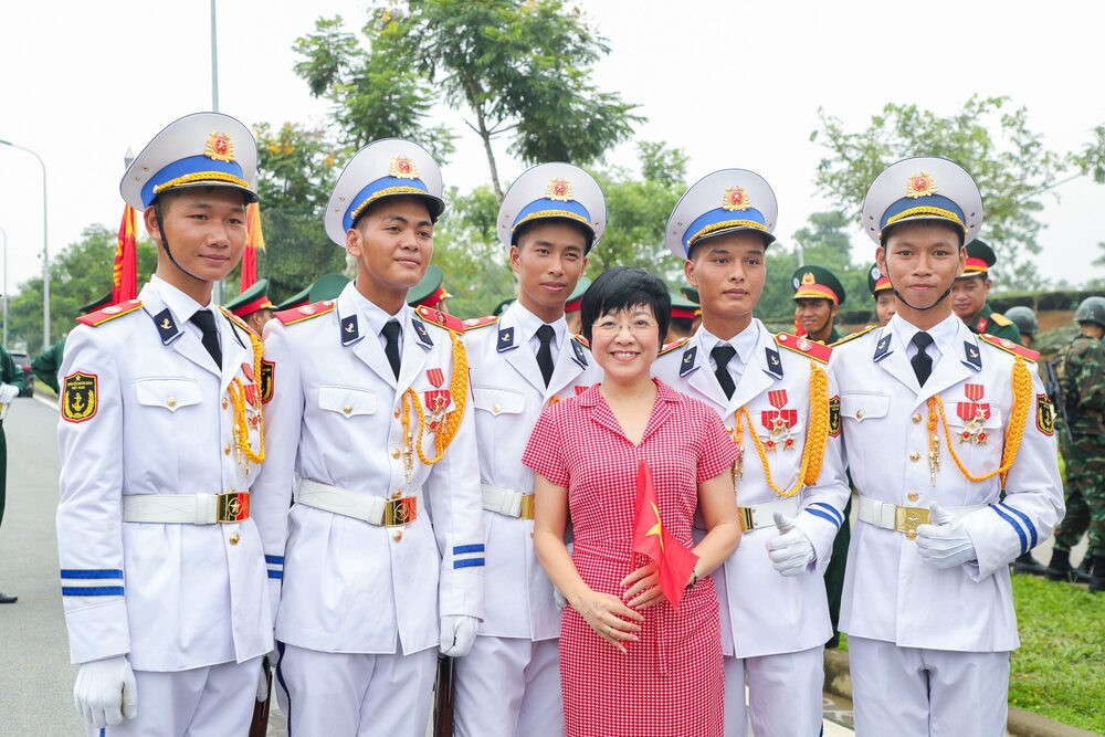 "Tôi xúc động vô cùng khi gặp các chiến sĩ đến từ những nơi rất xa như Sóc Trăng, Kiên Giang… Các cháu trẻ trung, khỏe mạnh, lại còn từng xem cô trên truyền hình khi còn nhỏ nữa", nữ MC chia sẻ đầy tự hào với PV VietNamNet.