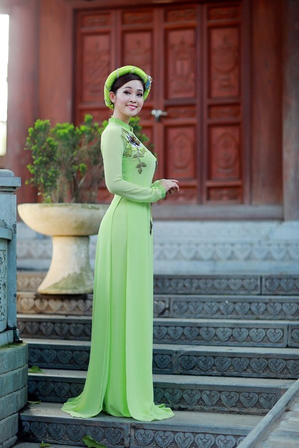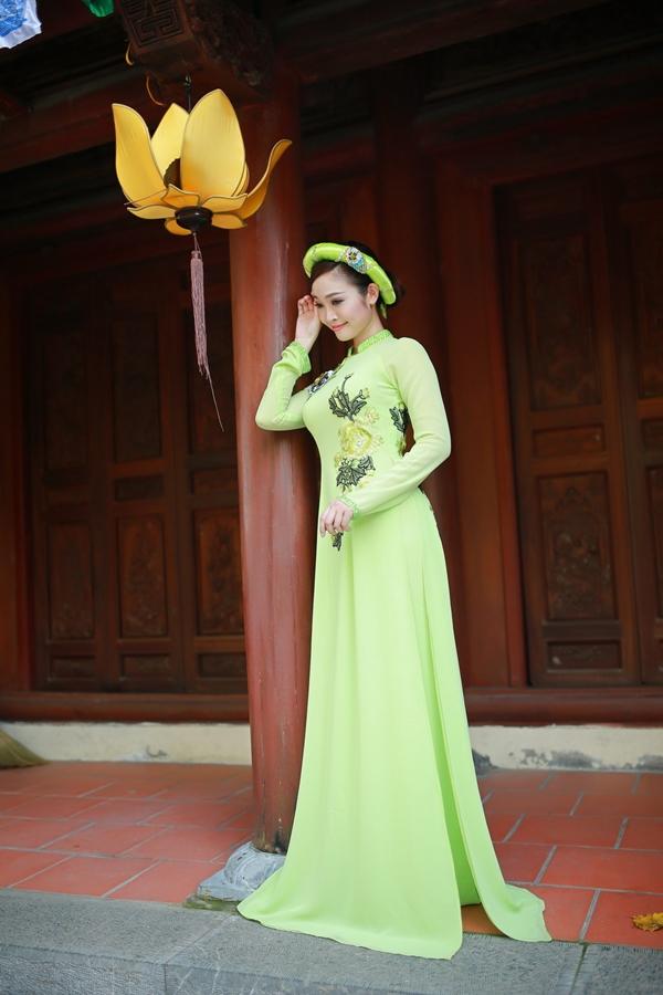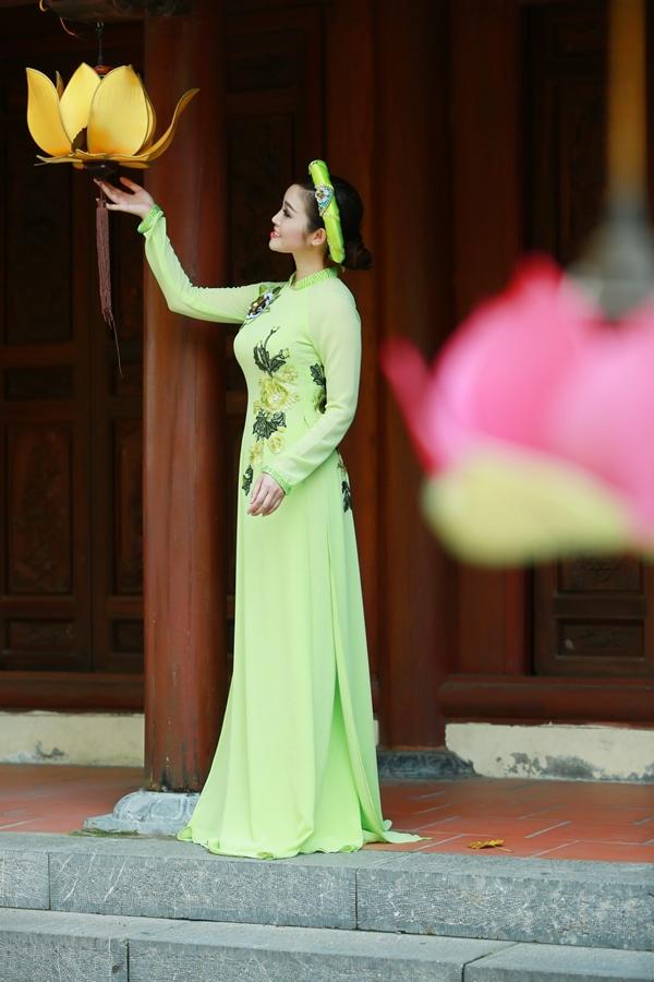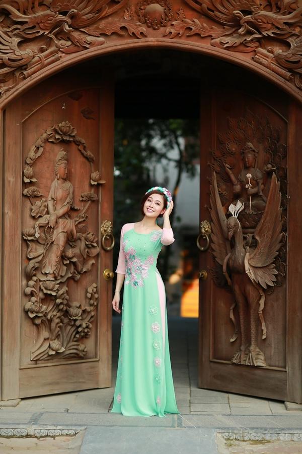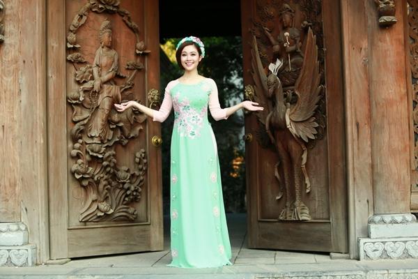 Khác hoàn toàn với hình ảnh lộng lẫy, sang trọng trong những khung hình lên sóng, MC Thùy Linh đẹp dịu dàng, e ấp trong bộ ảnh áo dài mới nhất dưới bàn tay thiết kế tài hoa của nhà thiết kế Anh Thư. Với những đường may tỉ mỉ, thiết kế vừa vặn tôn vinh những đường nét nền nã mà không kém phần quyến rũ, hình ảnh MC Thùy Linh hiện lên đẹp nhẹ nhàng, thanh lịch đúng chất của một cô gái Hà Nội xưa.
