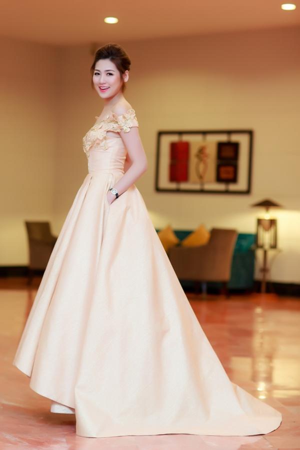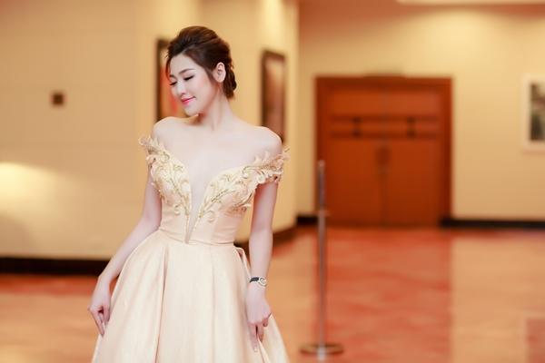 Khác với lúc lên sóng, Á Hậu Tú Anh trang điểm nhẹ, ăn mặc thanh lịch phù hợp với truyền hình. Nhưng khi xuất hiện tại sự kiện, Tú Anh diện chiếc đầm xòe, khoe tối đa vẻ gợi cảm và bờ vai ngọc. Chiếc đầm trắng thanh lịch và đầm xòe công chúa đều của nhà thiết kế Lê Thanh Hòa.