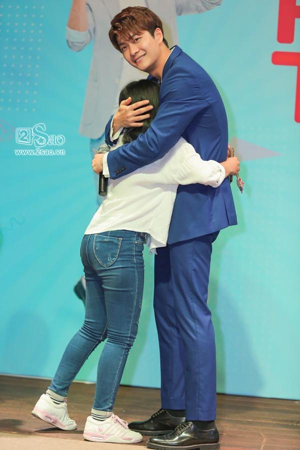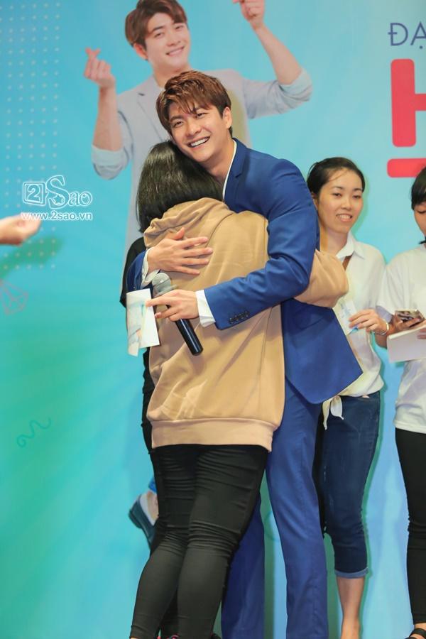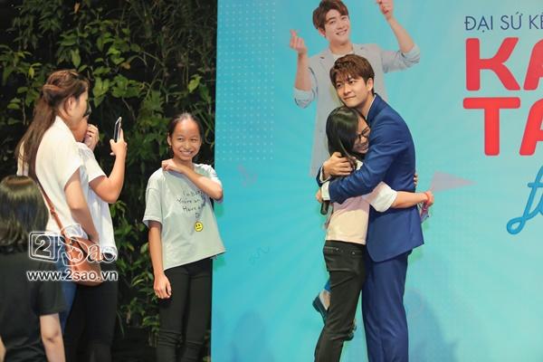Rất đông fan của Kang Tae Oh đến từ sớm chờ đợi thần tượng, đặc biệt là một “bà mẹ bỉm sữa” đã vượt gần 2000 km chỉ để được trực tiếp gặp mặt nam diễn viên dễ thương này. Không ngại ngần, Kang Tae Oh ôm thật chặt bà mẹ trẻ.