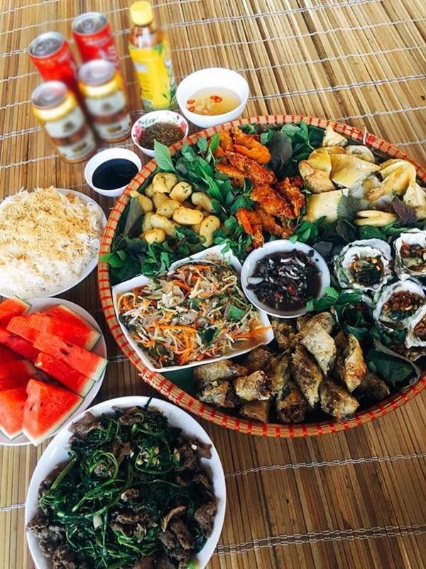 “Thực ra toàn món truyền thống, mình đi chợ nhờ nga mổ gà sẵn, thịt trâu thái sẵn luôn, tôm mua mình cũng nhờ họ bóc. Thịt làm nhân nem máy cũng xay luôn về mình chỉ việc chế biến thôi”, chị Lương cho biết.