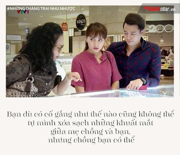 Trong trường hợp này, gặp phải một người chồng nhu nhược thì những mâu thuẫn chỉ ngày một sâu sắc. Đứng trước cuộc chiến giữa một bên là vợ một bên là mẹ mình, rất nhiều người chồng vì sự như nhược của mình mà đẩy mối quan hệ giữa hai người phụ nữ mà anh ta yêu thương nhất vào bế tắc, đẩy vợ mình vào bi kịch.