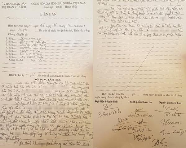 "Gia đình bà Ngọc quá hung dữ nên tôi chấp nhận yêu cầu để được yên ổn", biên bản của UBND thị trấn Kế Sách nêu ý kiến của ông Vinh.