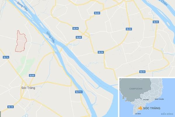 Xã Kế Thành (màu đỏ) ở Sóc Trăng. Ảnh: Google Maps.