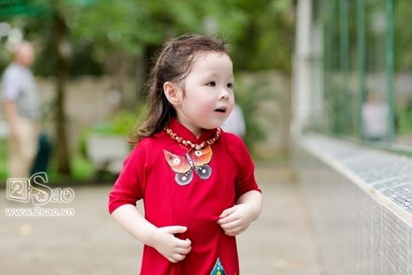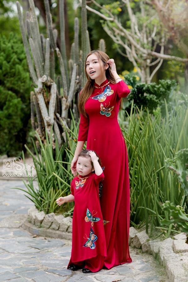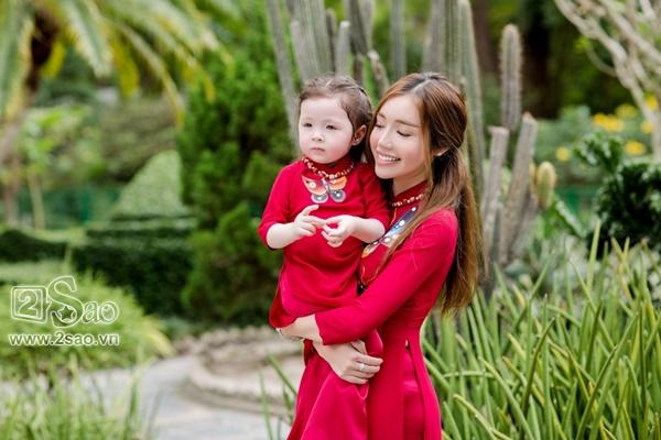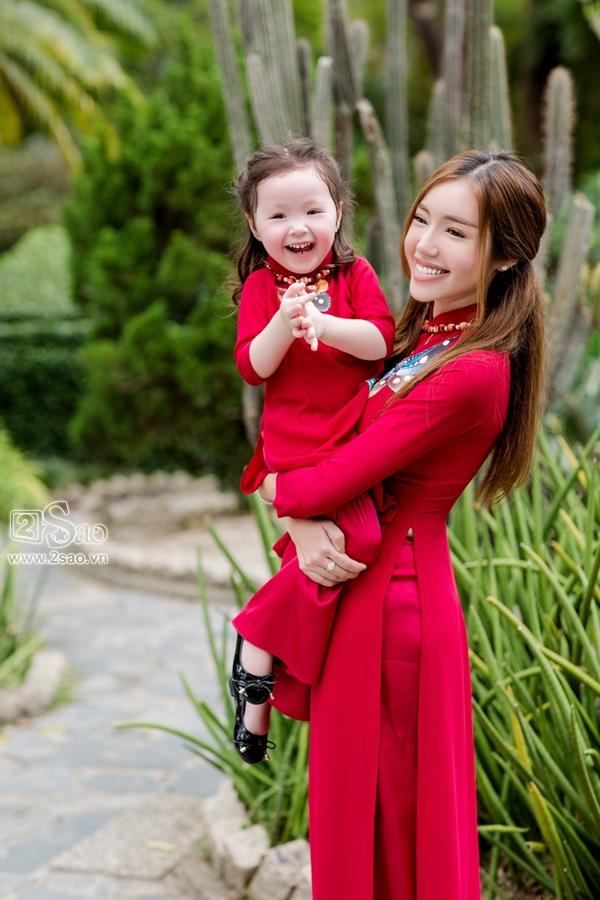 Dù diện trang phục hiện đại hay tà áo truyền thống, bộ đôi Elly Trần và con gái vẫn thể hiện sự hòa hợp, đồng điệu. Từng nụ cười, ánh mắt và cử chỉ của Elly Trần đều thể hiện tình cảm ngọt ngào cô dành cho con gái. Đặc biệt, con gái Cadie vô cùng thích thú khi được mẹ bồng bế. Cô bé vỗ tay không ngớt và nở nụ cười giòn tan khiến mẹ Elly vui vẻ tươi cười theo.
