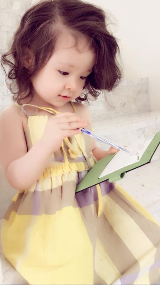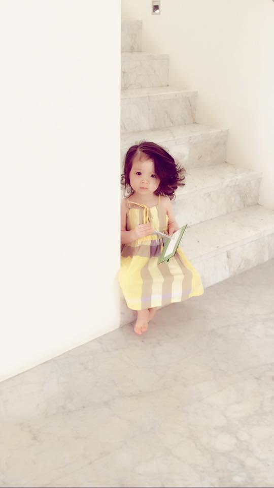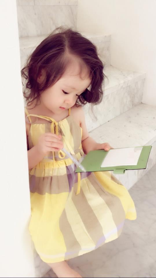 Trong khi công chúa nhỏ dễ thương với chiếc váy hai dây kẻ ca rô thì