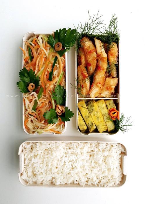 "Do 2 vợ chồng và các con chỉ gặp nhau vào buổi tối, nên việc dành một chút thời gian để bữa cơm trưa không làm mình cảm thấy quá mệt mỏi. Và mỗi lần chồng mang hộp cơm còn dư vài lá rau trang trí về, mình cảm thấy vui và cuộc sống thêm phần ấm áp hơn", chị Ngọc cho hay.