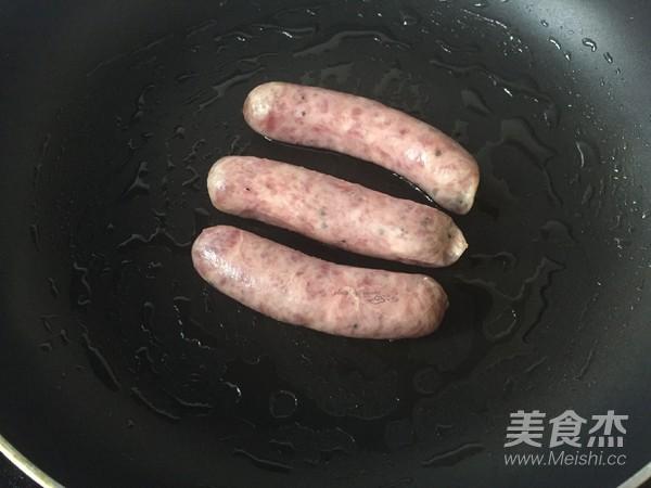 Bước 2: Cho một ít dầu vào chảo đun nóng và cho xúc xích vào rán chín vàng |