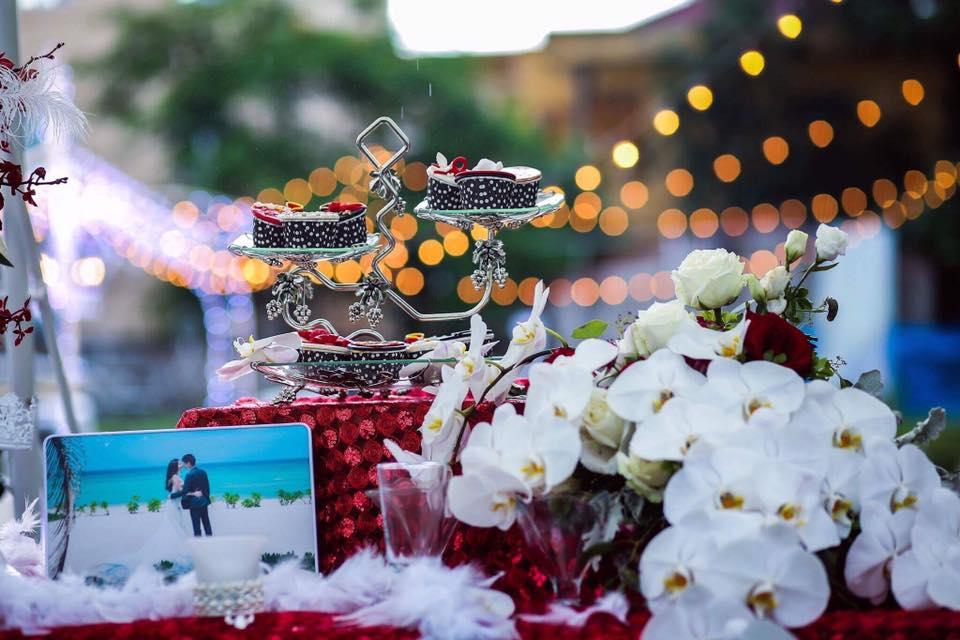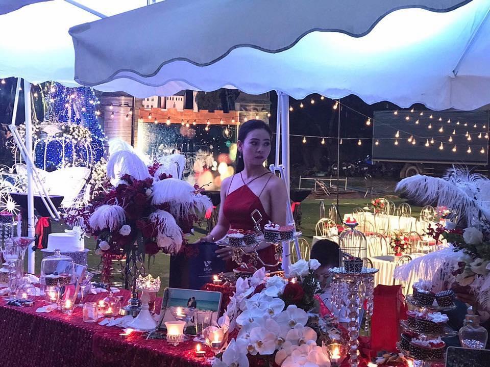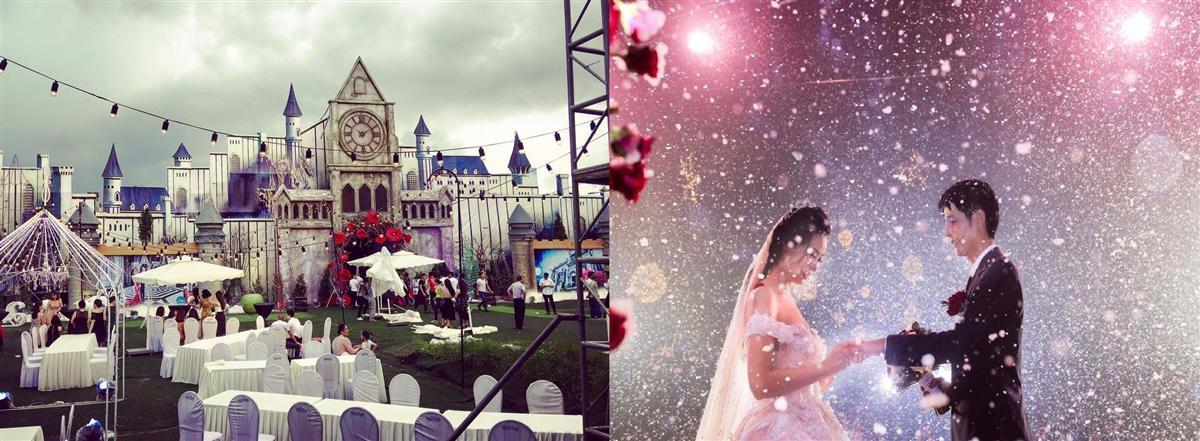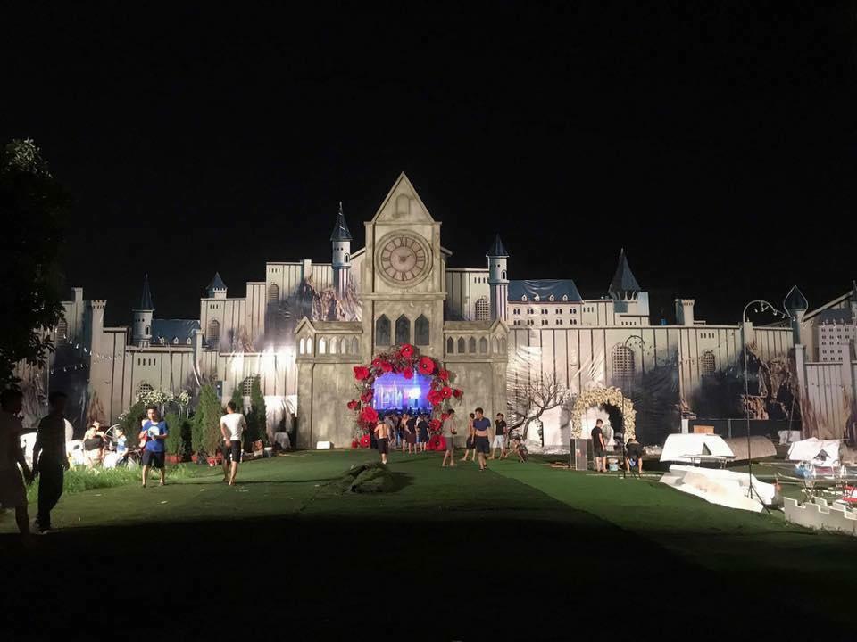 Theo chia sẻ của chú rể, đám cưới được dựng lên từ một bãi đất trống, trang trí theo kiểu dáng lâu đài. Để có thể tạo một không gian tiệc cưới như mong đợi, đôi uyên ương đã phải nhờ đến một đội ekip 30 người, làm việc liên tục gần 2 tháng.