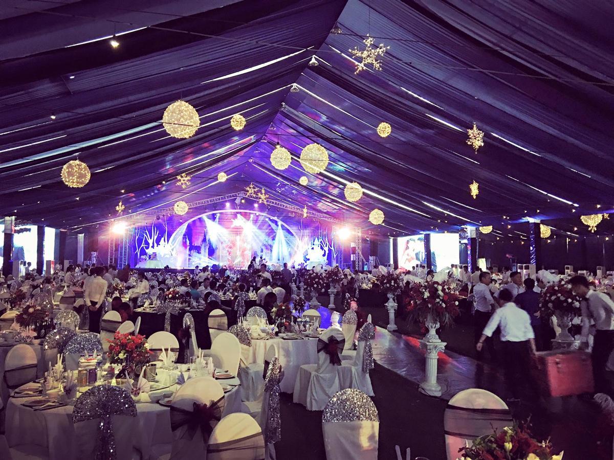 Không gian bên ngoài "siêu đám cưới" về đêm.