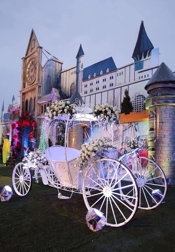 Không gian tiệc cưới được trang hoàng lộng lẫy theo phong cách lâu đài.