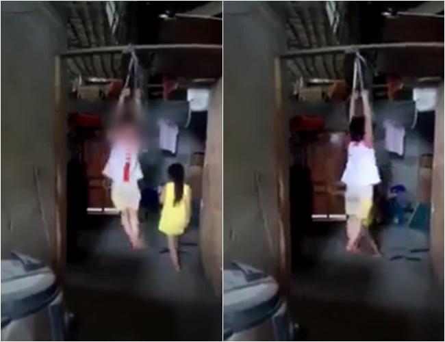 Hình ảnh bé gái bị mẹ nuôi treo lên xà nhà gây xôn xao cộng đồng mạng.