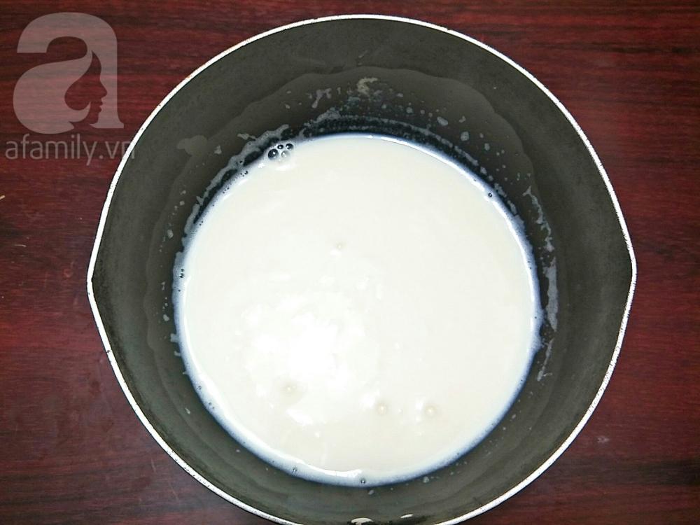 Bạn cho nước sôi vào 1 cái nồi sau đó thêm sữa đặc vào nồi và khuấy đều cho sữa hòa tan.