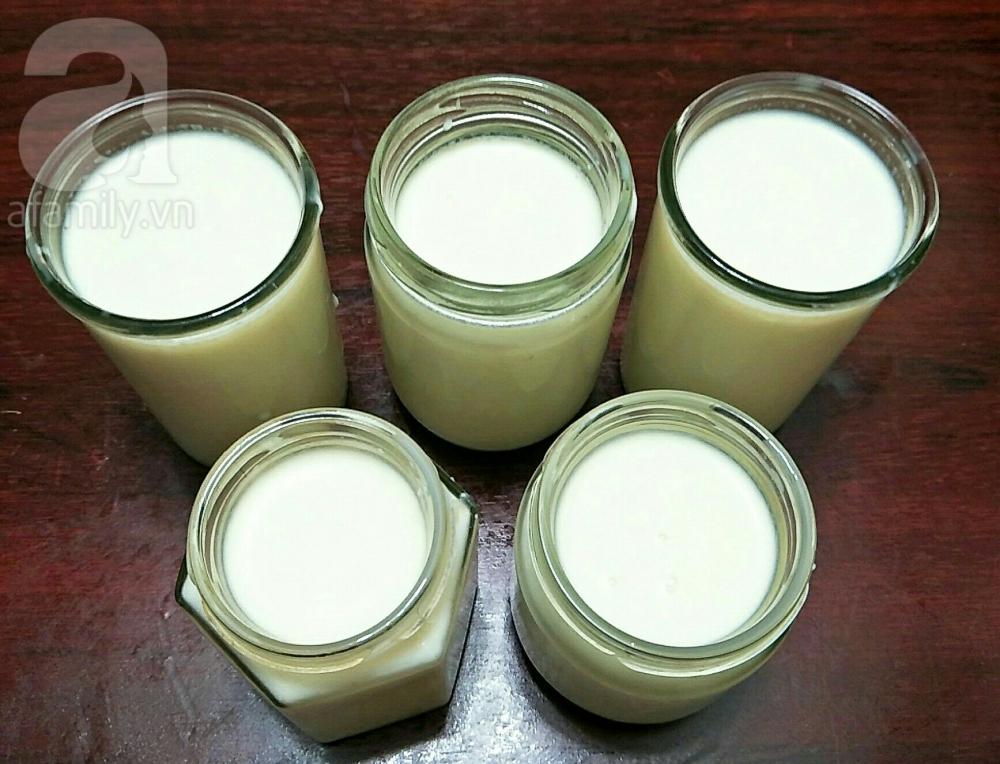 Rót hỗn hợp sữa chia đều vào các hũ sạch đã được chuẩn bị trước.