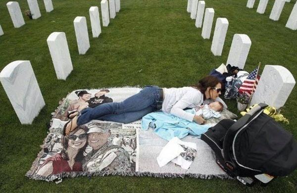 Theo đó, tại một nghĩa trang quân đội ở San Diego, California (Hoa Kỳ), suốt 3 năm vừa qua những người sống gần khu vực này thường thấy hình ảnh một cô gái trẻ bế theo một đứa bé sơ sinh, nằm bên cạnh một ngôi mộ đã xanh cỏ.