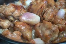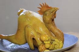 Chặt xong xếp lại đĩa theo hình con gà là xong".