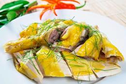 Thứ hai, gà luộc chín tới tầm nếu chín quá chặt nát và bong da.