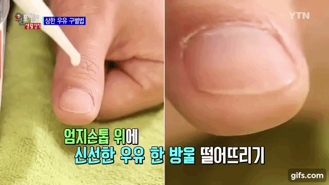- Cách phân biệt này khá đặc biệt. Hãy nhỏ 1 giọt sữa lên móng tay cái. Nếu thấy giọt sữa bám dính thành giọt tròn trên móng tay mà không lan rộng hoặc chảy khỏi móng tay thì sữa này vẫn còn uống được.