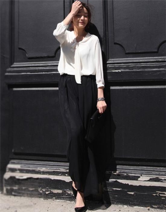 Với dạng quần này, điều bạn nên lưu ý là phần áo mặc phía trên và giày dép nên gọn gàng thôi. Khéo léo một chút, bạn sẽ có bộ đồ rất thanh lịch, dịu dàng.