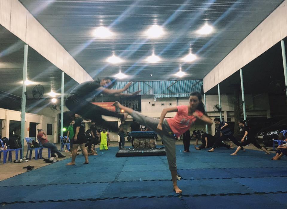 Hình ảnh tới phòng luyện tập đầy mạnh mẽ và cá tính của Midu khiến fan rất