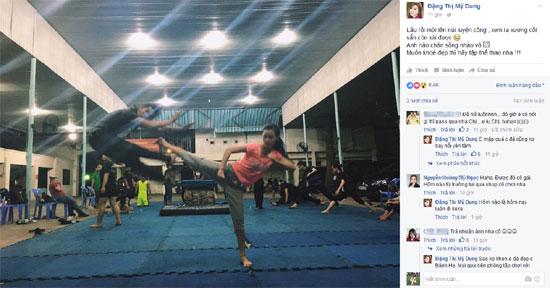 Mới đây nhất, hot girl Sài thành lại chia sẻ hình ảnh mình luyện tập thể thao với những động tác võ thuật mạnh mẽ khiến fan rất bất ngờ. Bởi mọi người bình thường thấy một Midu có vẻ ngoài hiền lành, dịu dàng, nữ tính. Cùng với hình ảnh "tung chưởng" này Midu vui vẻ viết: "Lâu rồi mới lên núi luyện công, xem ra xương cốt vẫn còn xài được. Anh nào chán sống nhào vô. Muốn khỏe đẹp thì hãy tập thể thao nha."