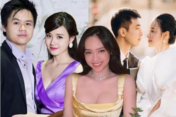 Midu và chồng thiếu gia trong tiệc cầu hôn tại Đà Lạt (trái) và khoảnh khắc trong tiệc cưới ở TPHCM.
