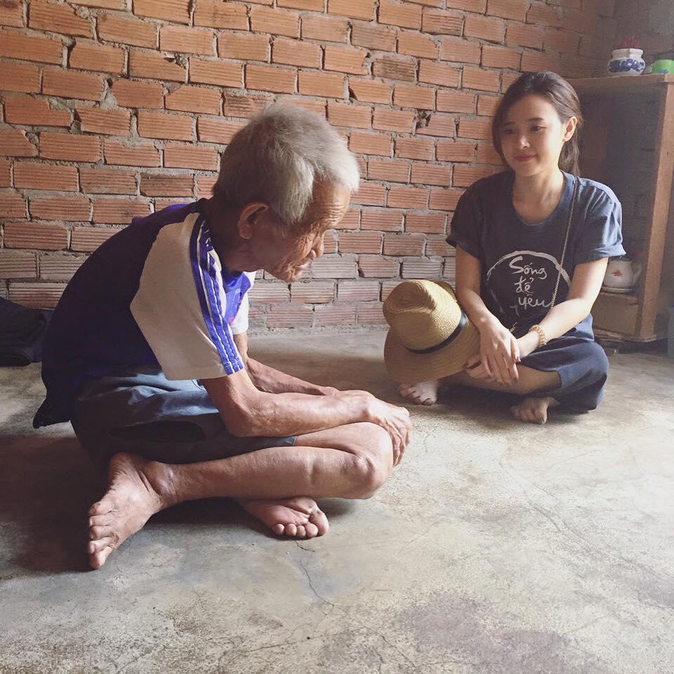 Hình ảnh giản dị cùng hành động thiện nguyện đầy ý nghĩa của Midu dành cho ông cụ già bán vé số.