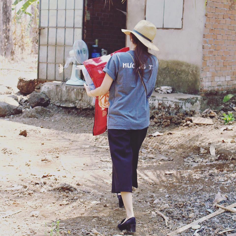 (2Sao) - Hình ảnh giản dị và hành động cao cả của Midu khi đi từ thiện nhận được nhiều lời khen ngợi.